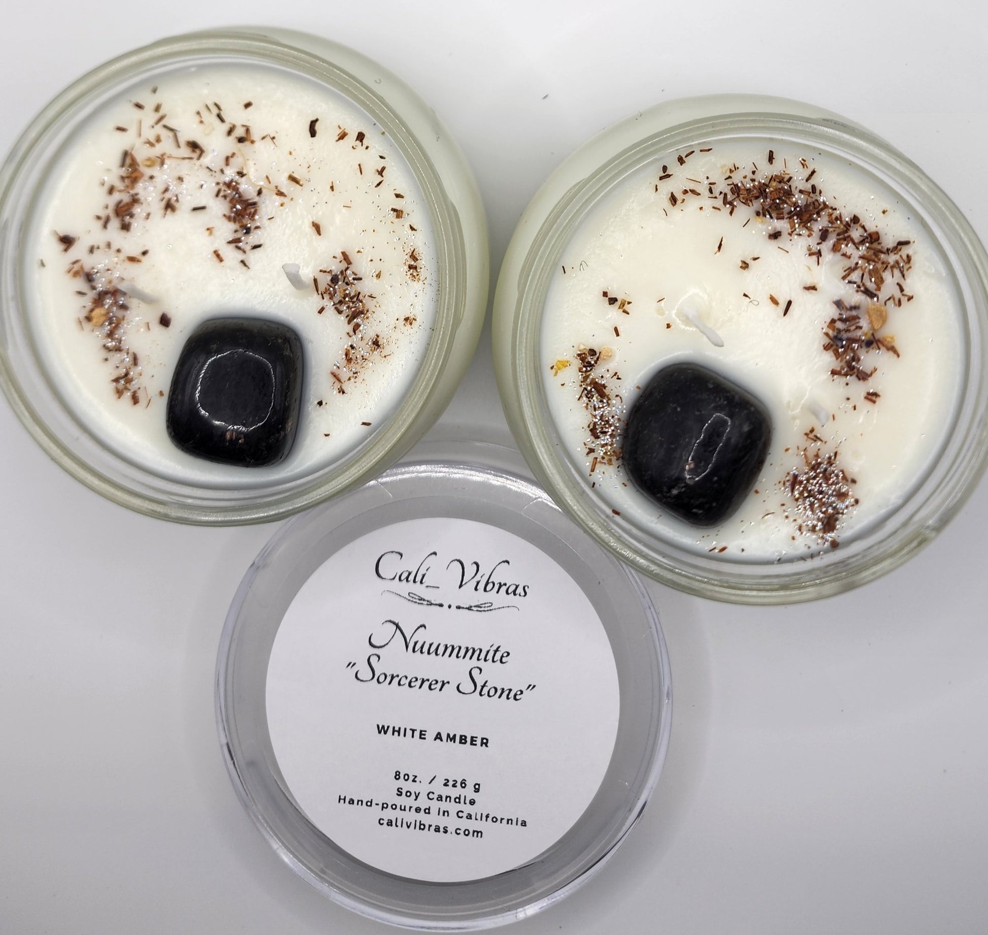 Nuummite stone is one of the oldest stones on the planet. It is often called or known as the “Sorcerer Stone.” The Sorcerer Stone holds ancient wisdom and connection to the elders. Nuummite is a healing stone, protector and activated the Root Chakra. This stone partnered with the soft aroma of White Amber is a perfect combo to ground and open your Root Chakra and connect with the universe.